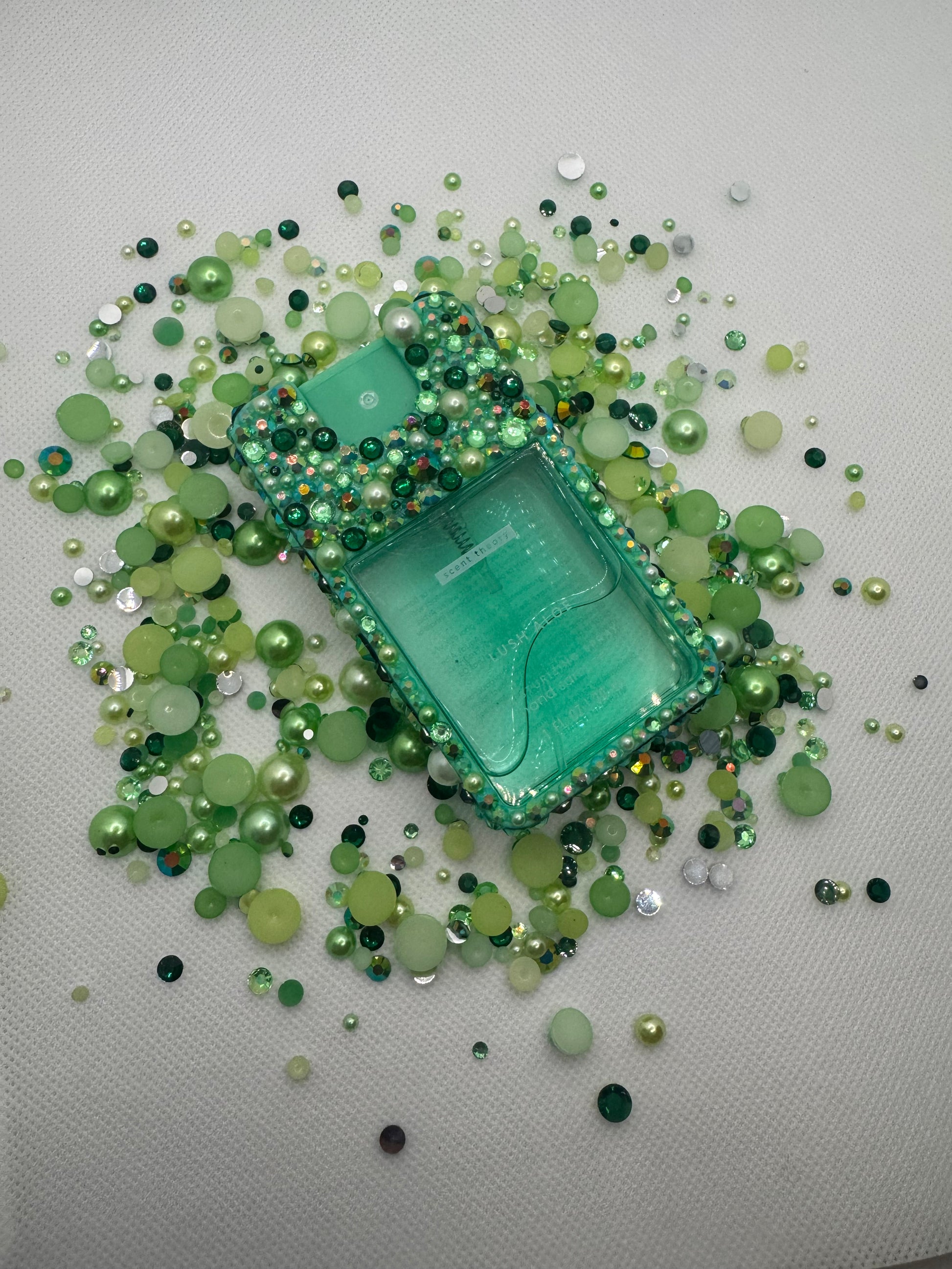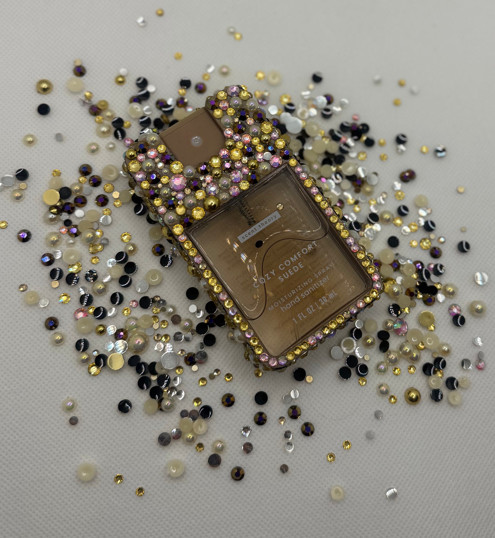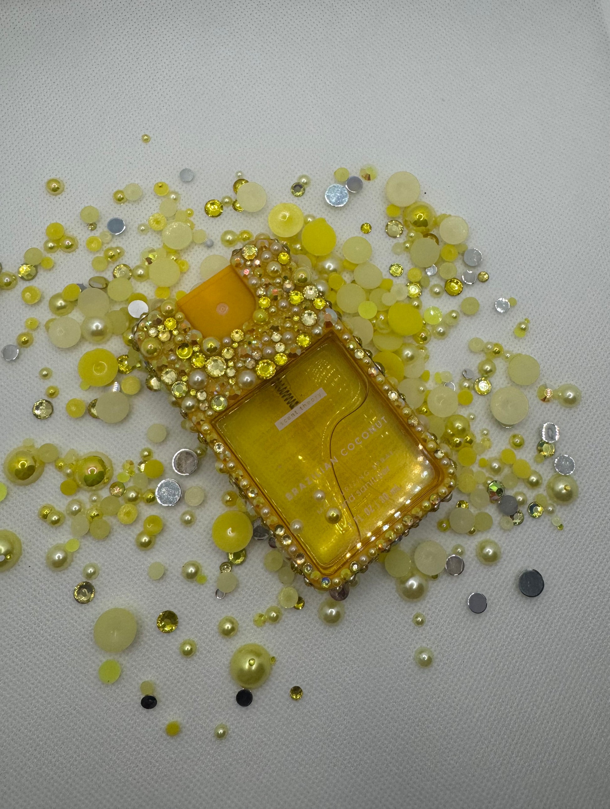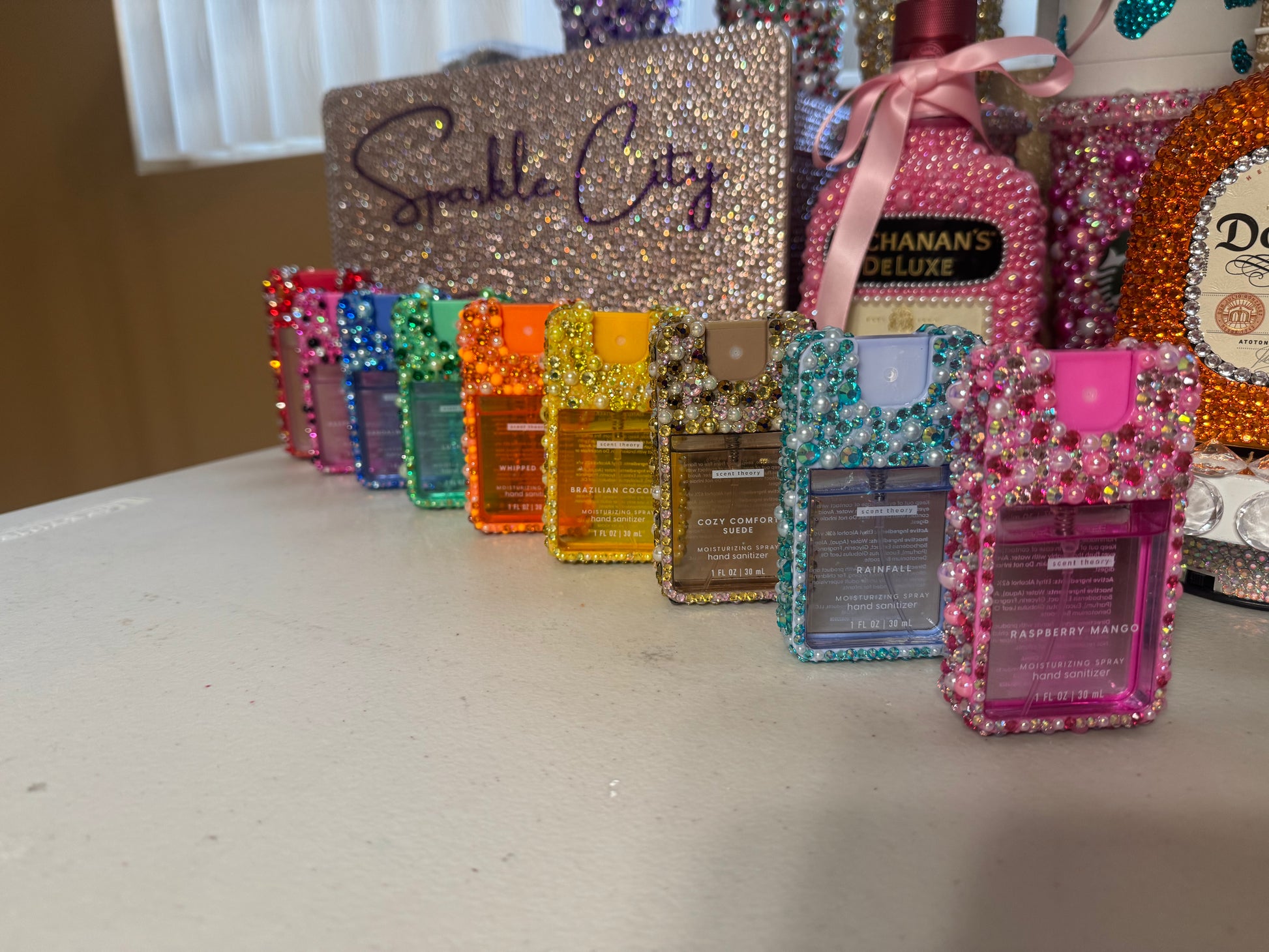 Hand Hanitizers decorated in half pearls, and rhinestones. This item is Ready to ship.